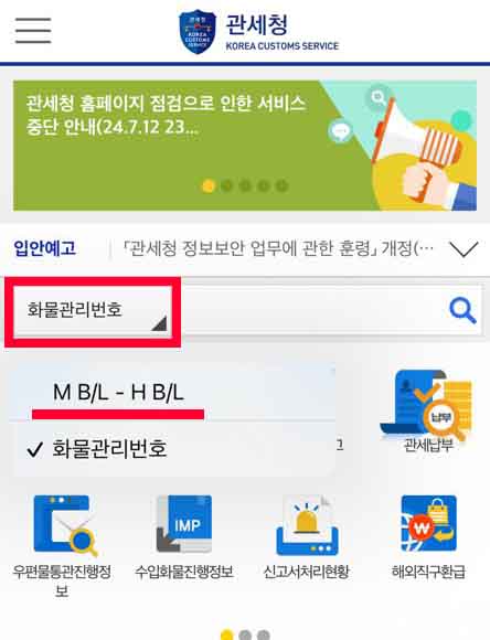 모바일 관세청 앱에서는 관세청에서 제공되는 서비스 중 유용한 콘텐츠(홈페이지, 인터넷통관포털 UNI-PASS)를 한번에 확인할 수 있는 맞춤형 통합서비스를 제공합니다. 주요 신고/신청 서비스
